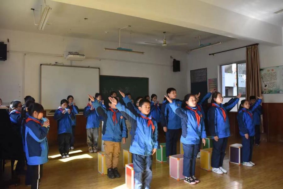 在大同二小,刘盛辉一行参观了校园,与同学们亲切交流,详细了解了同学们的学习、生活状况。同学们热情地为大家戴上红领巾并呈上丰富而生动的节目演出。